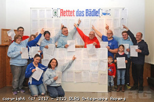 Liebe DLRGler und Freunde, die erste Unterschriftenaktion zum Erhalt der Lehrschwimmhalle hat sehr viel Zuspruch bekommen und hat weiterhin Bestand. Viele Bürger haben damit klar zum Ausdruck gebracht, dass ihnen das Anliegen wichtig ist. Danke! Die Listen werden in absehbarer Zeit der Stadtverwaltung als unmissverständliches Signal für den Erhalt der Sport- und Ausbildungsstätte (bzw. einer Alternative) übergeben werden. Da der Abriss zwischenzeitlich als Gemeinderatsbeschluss durchgegangen ist, ist es notwendig, dass wir eine zweite Petition starten. Passend zum „Bädle“ könnte man sagen, dass unser Anliegen damit „wasserdichter“ untermauert wird. Bitte unterstützt uns mit einer Unterschrift und eurer St ... Mehr erfahren