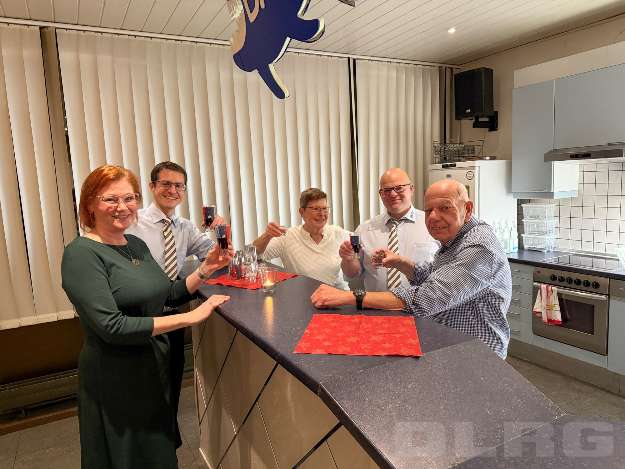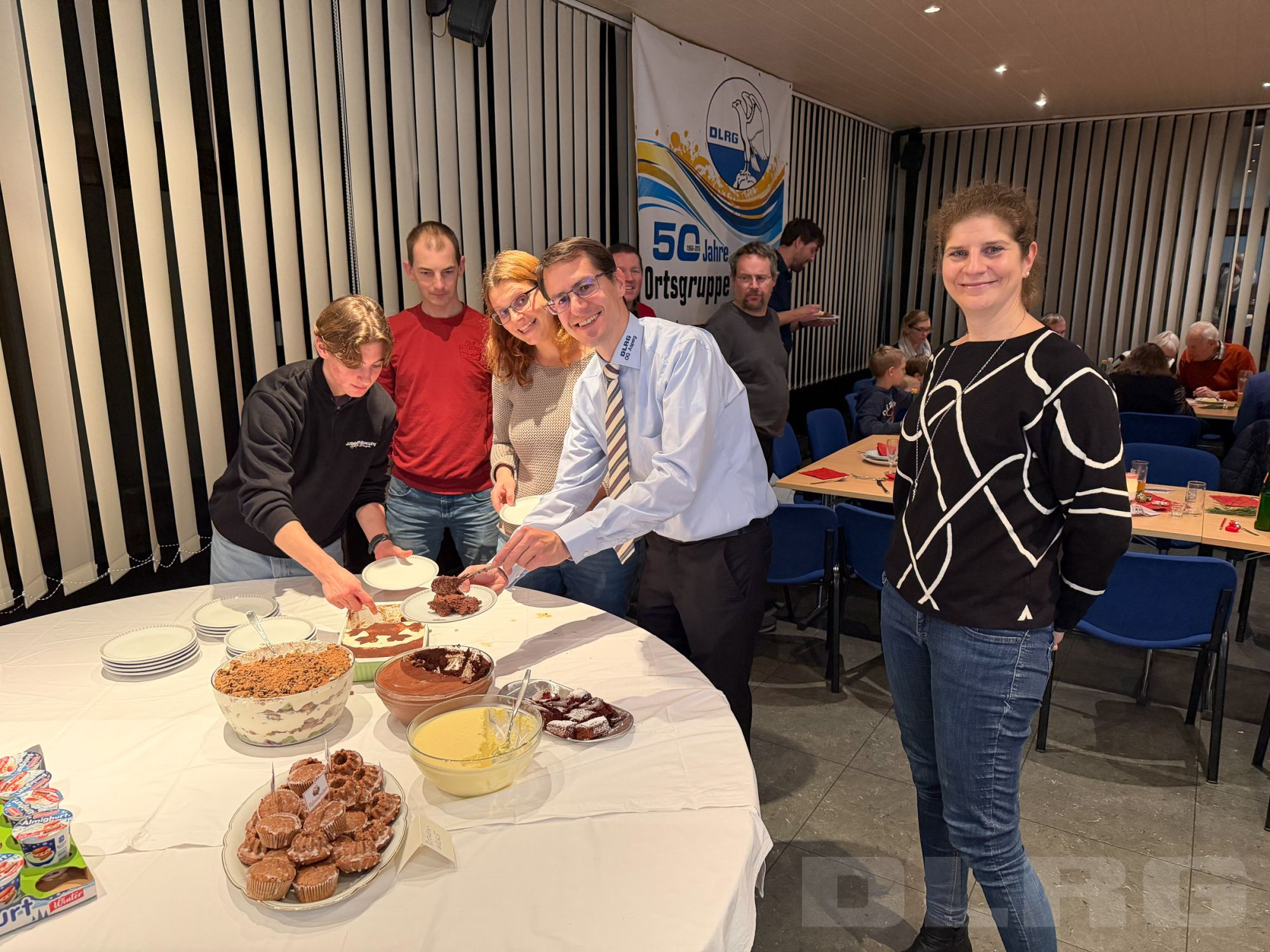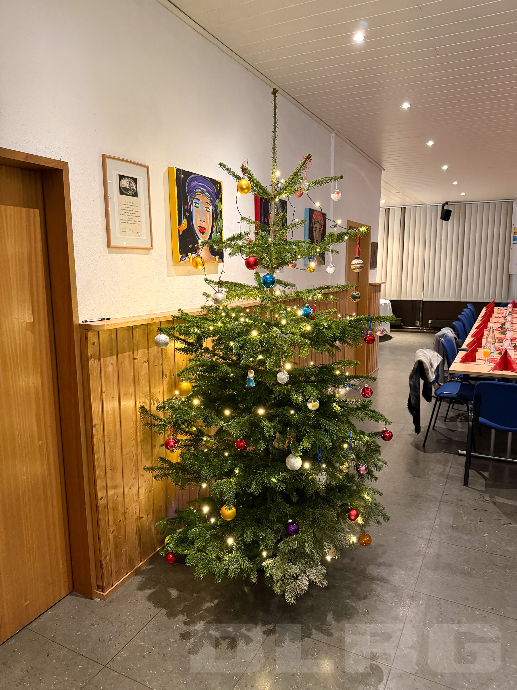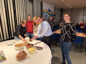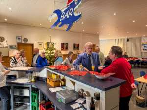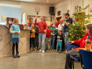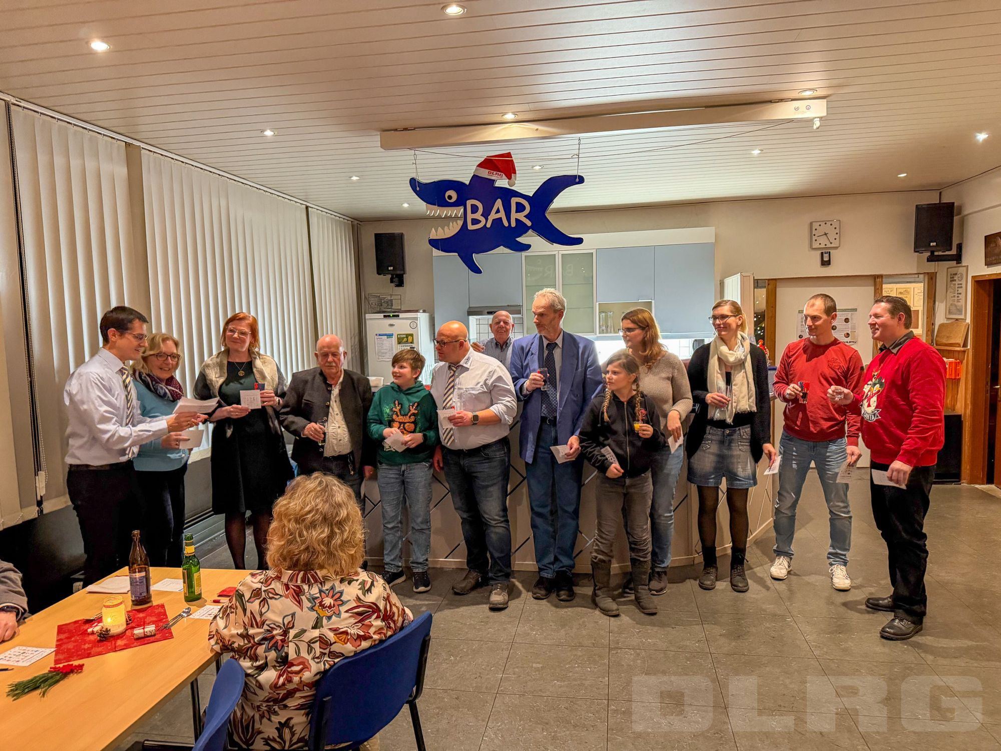 Einen Tag später trafen sich rd. 45 Mitglieder zur gemeinsamen DLRG-Weihnachtsfeier. Das Vereinsheim war festlich dekoriert und eingedeckt. Und der Weihnachtsbaum, den die Kinder am Vortag bei ihrer Feier geschmückt hatten, erstrahlte zur Begrüßung beim Sektempfang. Für das leibliche Wohl war gesorgt. Und für die gute Stimmung ebenso. Das kurzweilige Weihnachtsbingo mit Michael Bayer sorgte für manchen Lacher und mit Weihnachtsliedern und -geschichten, sowie kleinen Präsenten für festliche Momente. Großer Spaß für alle war der Wettweitwurf von Papierfliegern, die aus den Bingozetteln gebastelt wurden. In der Buffetecke wurden Bilder als Jahresrückblick an die Wand projiziert, was beim Dessert für nette Stelldicheins und Gespräche sorgte. Der gesellige Abend war ein schöner Abschluss für eine arbeitsreiches Jahr und man blickte in zufriedene Gesichter. Danke an alle Nachtisch-Spender und Helfer, die bei der Vorbereitung geholfen und am nächsten Tag „klar Schiff“ gemacht haben.